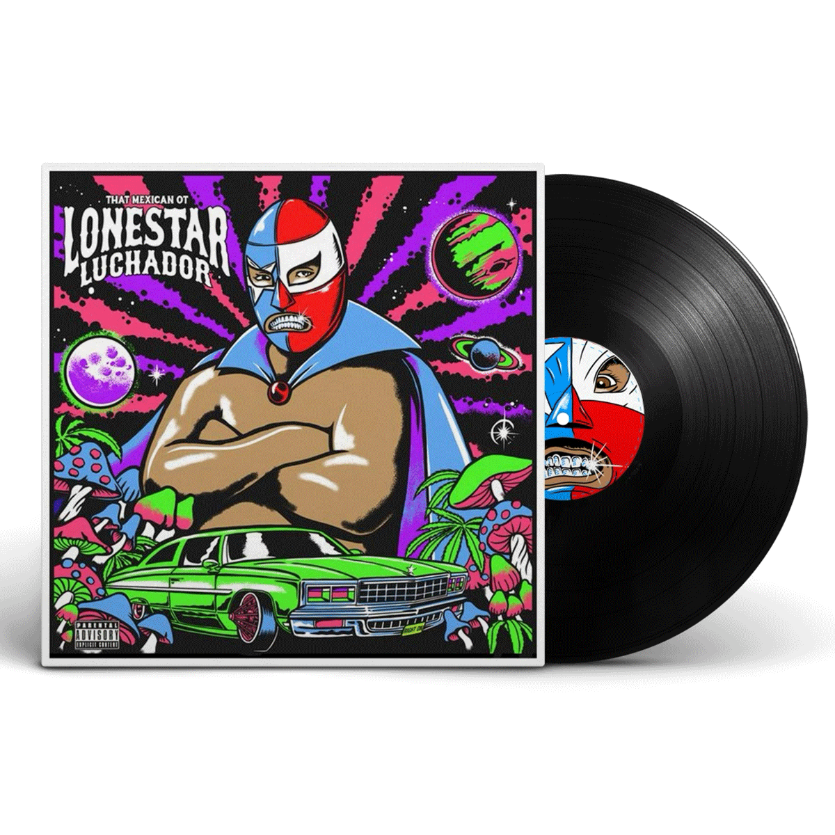 Limited 300 piece run of Lonestar Luchador Full Deluxe Vinyl. Artwork by Jesse California